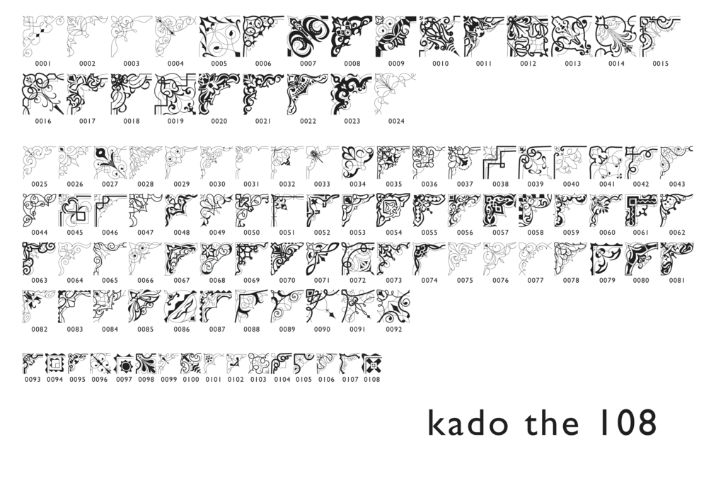 108 kinds of decorations with all outlines / Recorded in (.ai) of Adobe Illustrator ver.10 / png transparent image with resolution 600dpi from original size / jpeg image / SVG and EPS file / PDF file